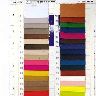 Stretch Fabrics: 2-way or 4-way Polyester/Viscose/Spandex blends for trousers and pants.